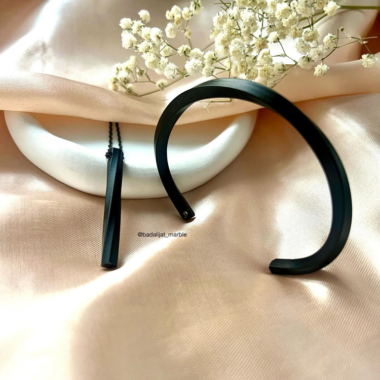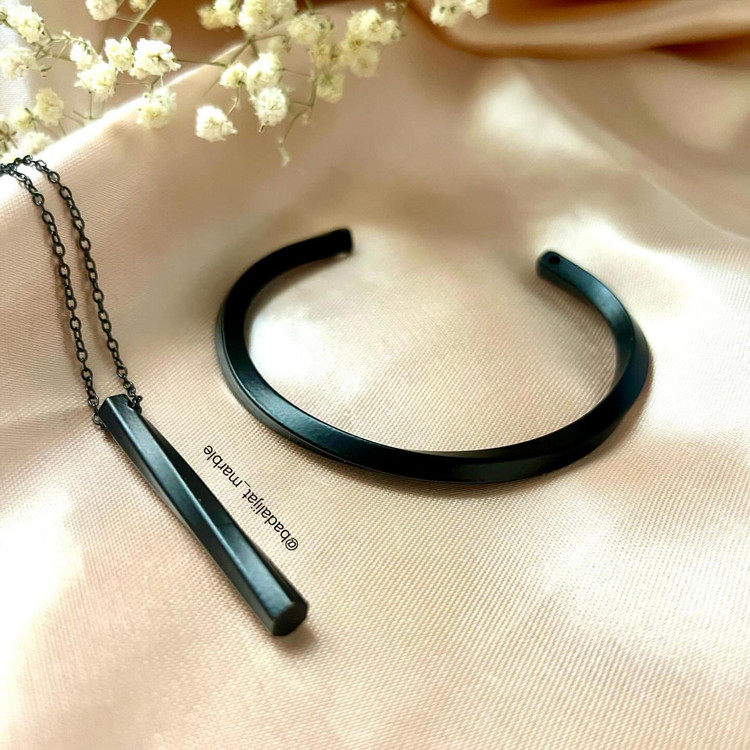 ست بنگل وگردنبند با پلاک مکعب