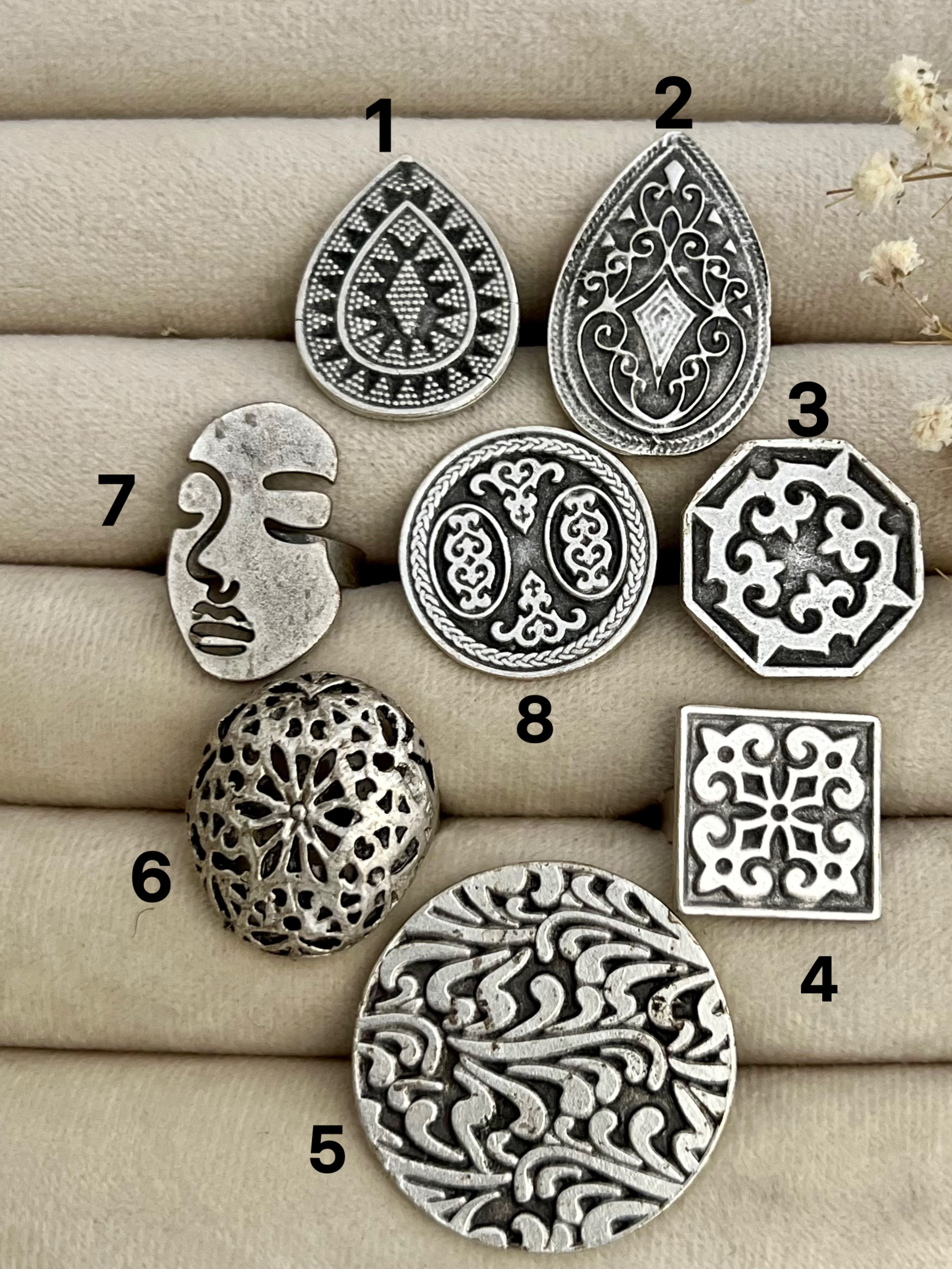 اگه دوست داری یه استایل شیک داشته باشی یکی از این انگشترا بخر انگشتر ورشو رنگ نقره ای فری سایز چند طرح زیبا فری سایز هستن در۸طرح متنوع