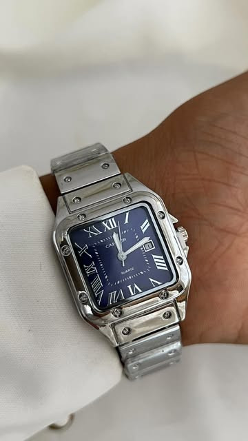 ساعت کارتیر صفحه سرمه ای رنگنقره ای تاریخ دار بند قابل کوتاه شدن باتری قابل تعویض در صورت مراقبت رنگ ثابت
