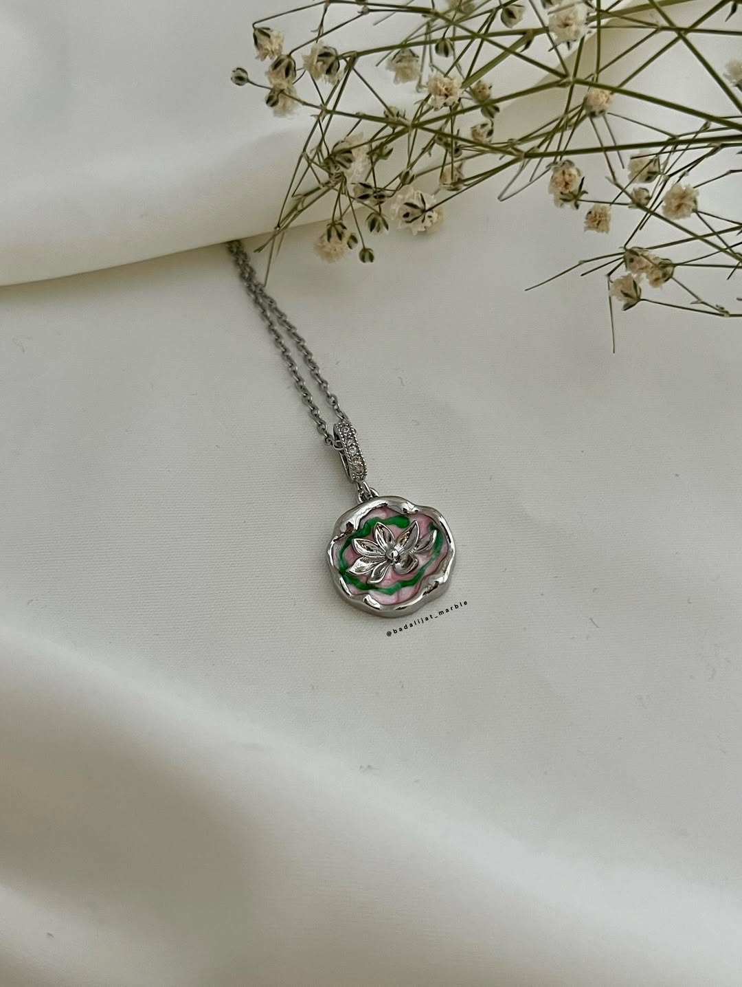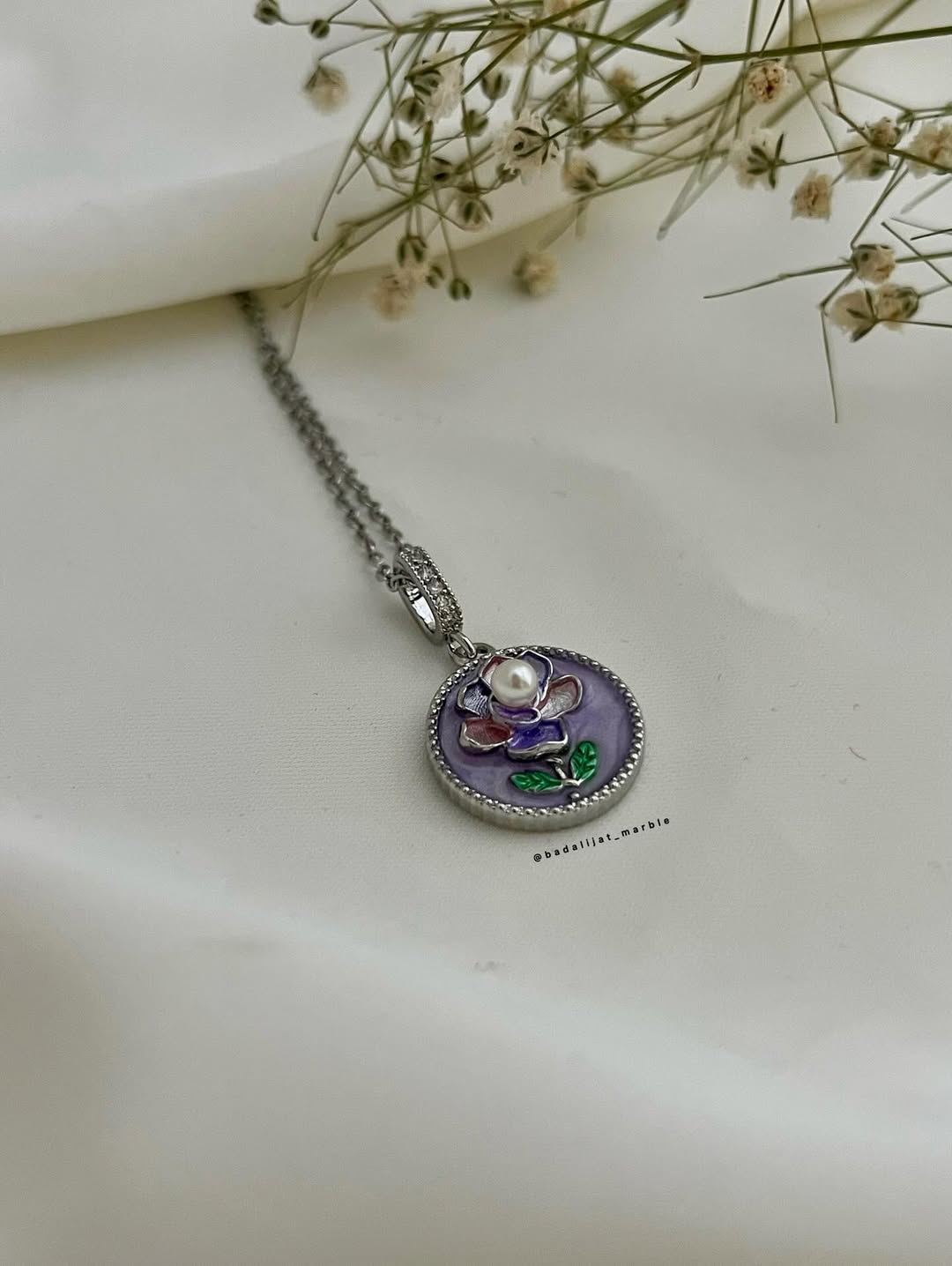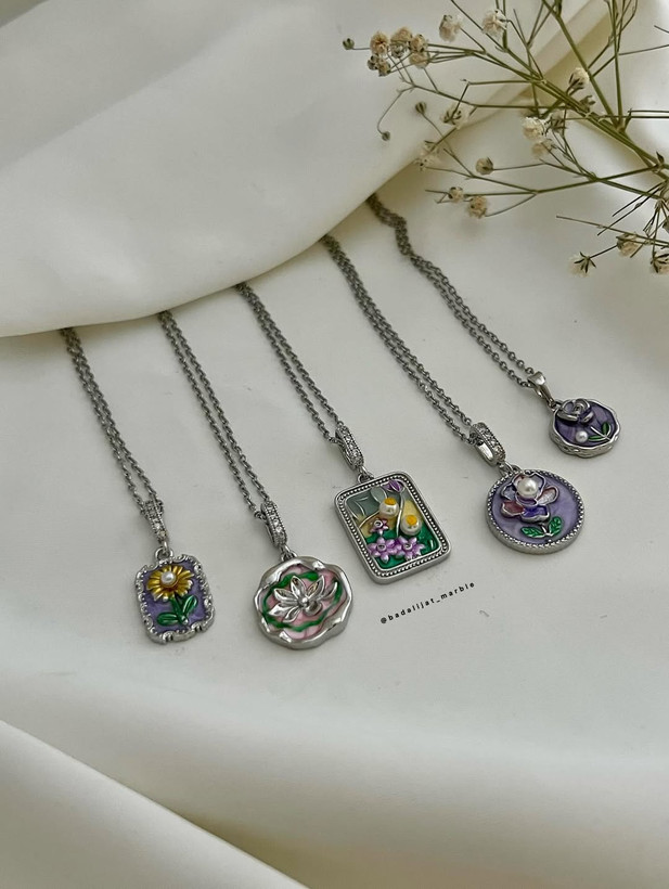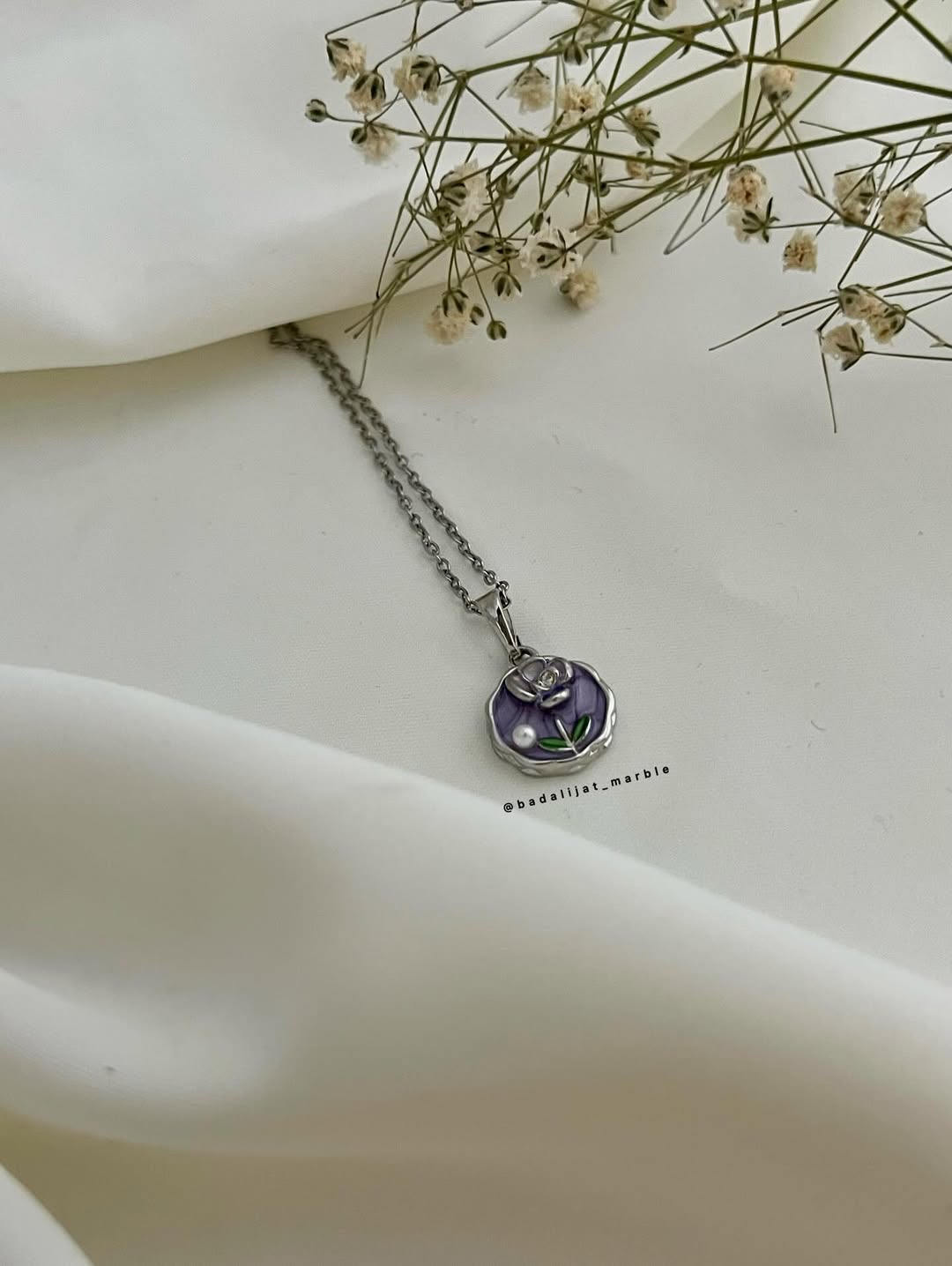 گردنبند مینیمال میناکاری رنگ نقره ای با ترکیب رنگ زیبا رنگ ثابت جنس پلاک مراقبتی