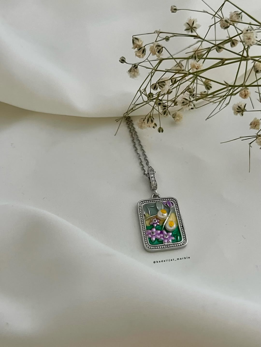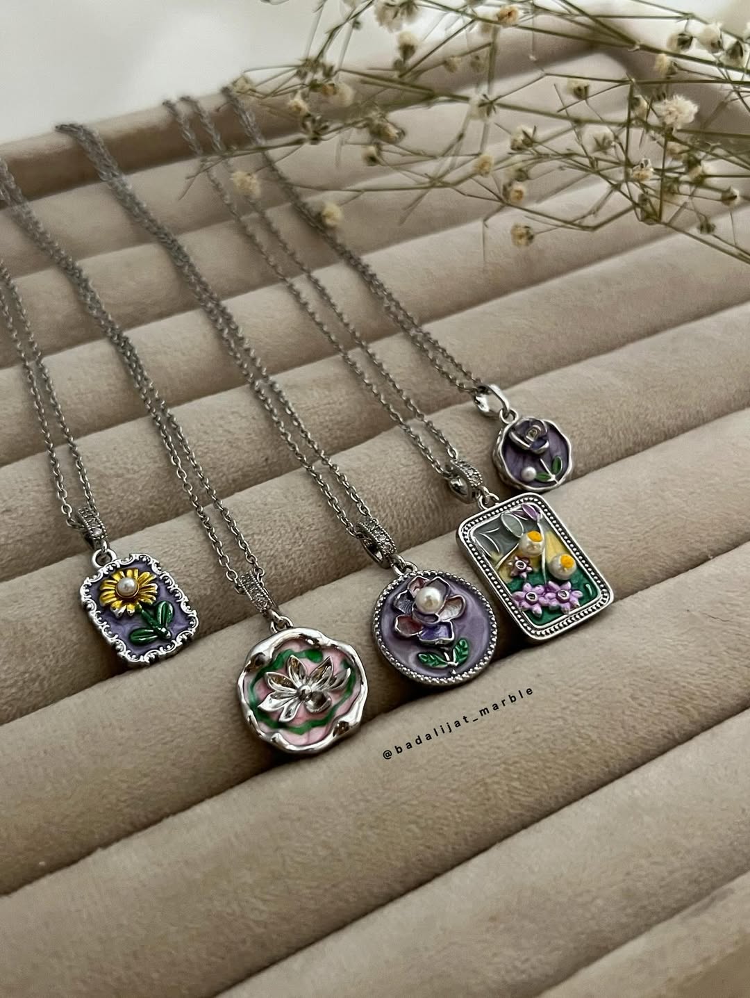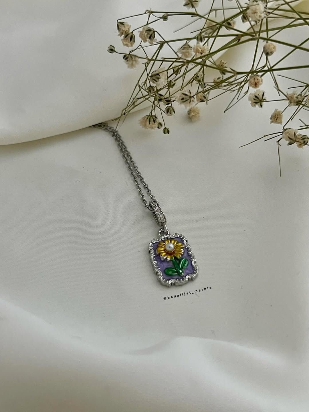 گردنبند مینیمال میناکاری رنگ نقره ای با ترکیب رنگ زیبا رنگ ثابت جنس پلاک مراقبتی