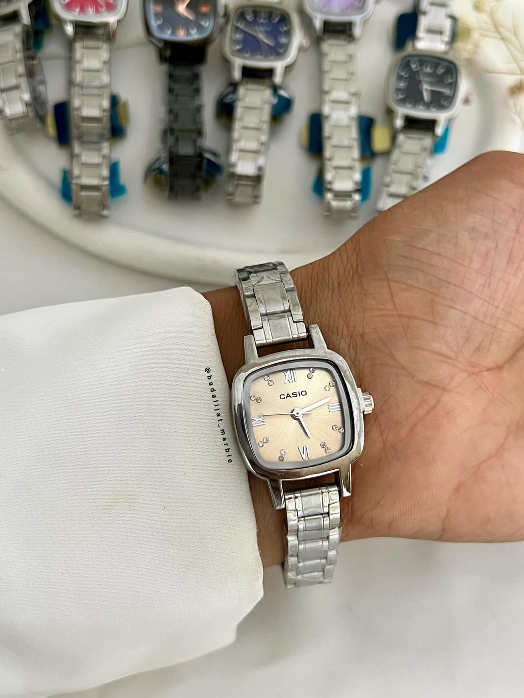 ساعت با کیفیت کاسیو در ۷ رنگ جذاب و خاص باتری قابل تعویض بند قابل کوتاه شدن. بند رنگ ثابت و دور قاب مراقبتی