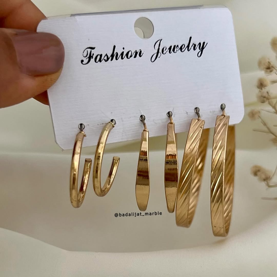 پک شامل ۳جفت گوشواره ۳سایزی رنگطلایی در صورت مراقبت رنگش ثابته.