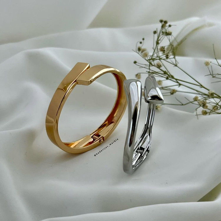 بنگل شیک مشابه طلا در دو رنگ طلایی و نقره ای استیل نیست ولی کیفیت ابکاریش بالاست نیاز به مراقبت داره به راحتی باز و بسته میشه مناسب تا مچ ۱۹سانت