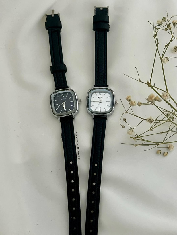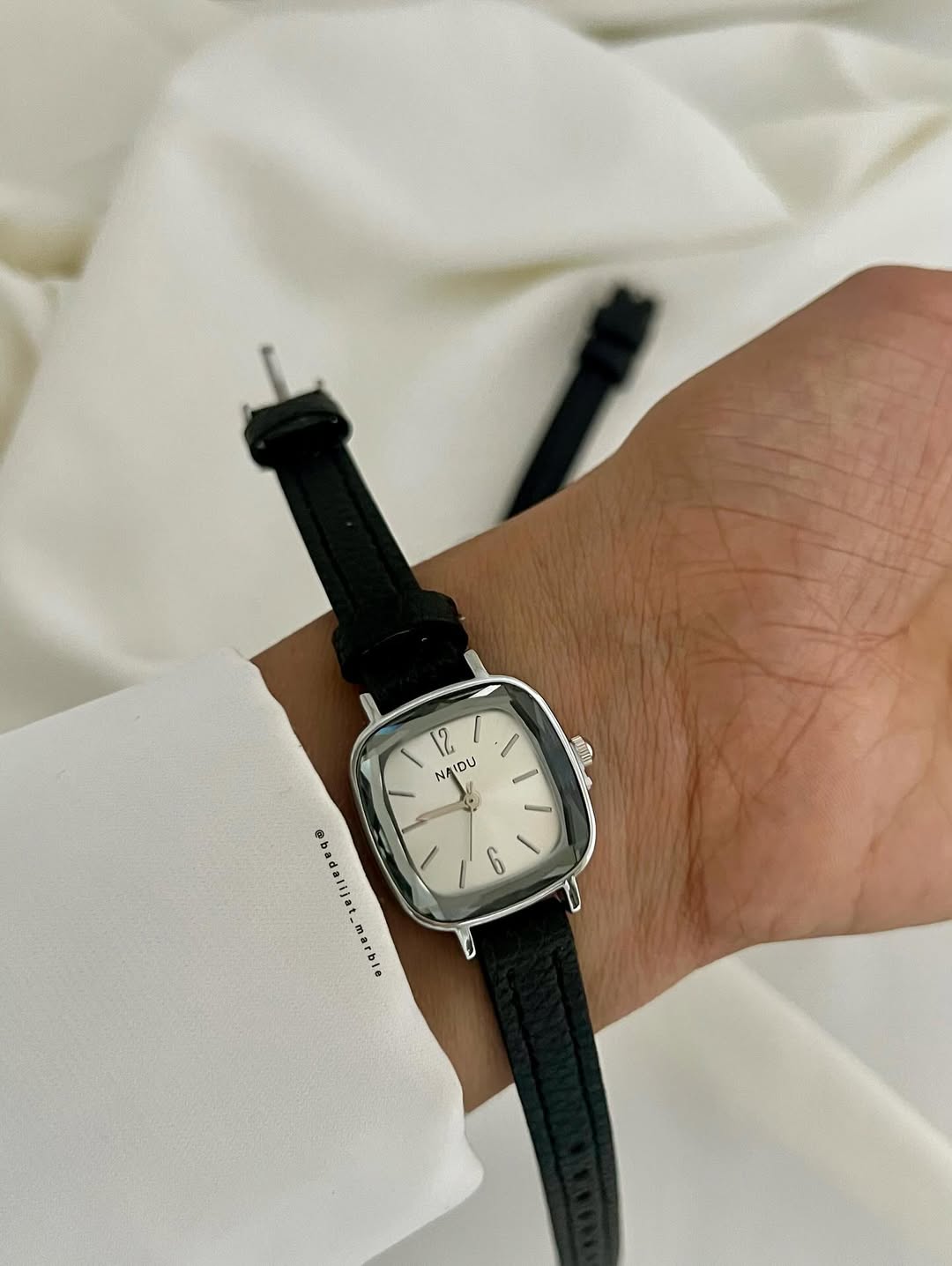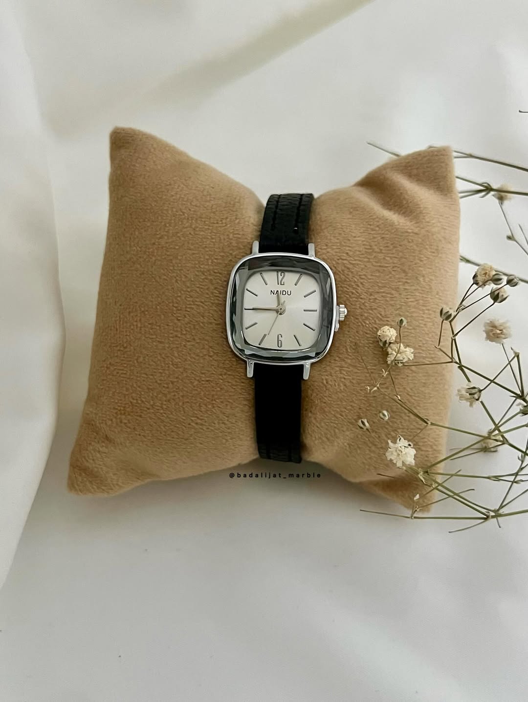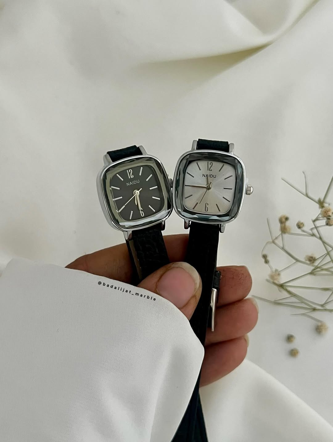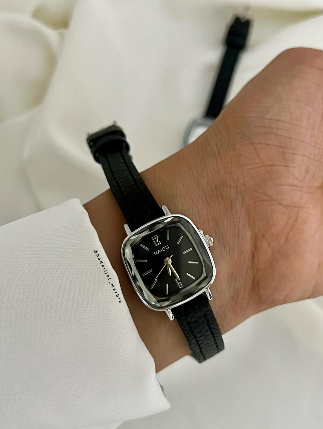 ساعت بند چرمی برند نایدو صفحه مربع نقلی و شیک بند مشکی چرمی در دو رنگ صفحه سفید مشکی