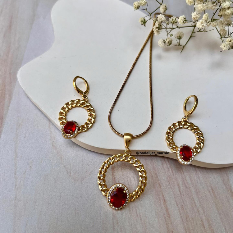 نیم ست شامل گردنبند و گوشواره رنگ ثابت جنس پلاک و گوشواره طلاروس و زنجیر استیل رنگ ثابت با ده طرح زیبا و شیک