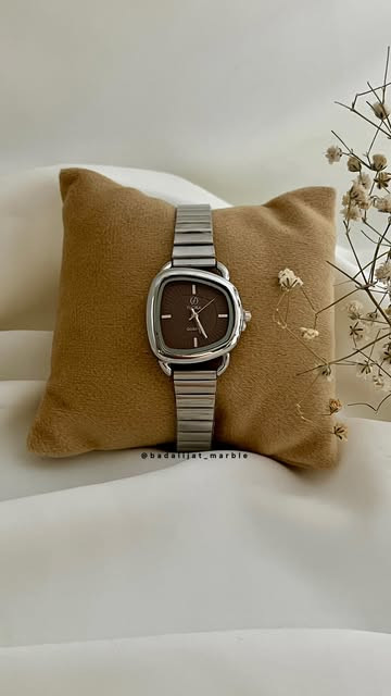 ساعت دفرمه جذاب ترند پاییز برند فلورا رنگ پر طرفدار شکلاتی بند نقره ای رنگ ثابت بند قابل تنظیم