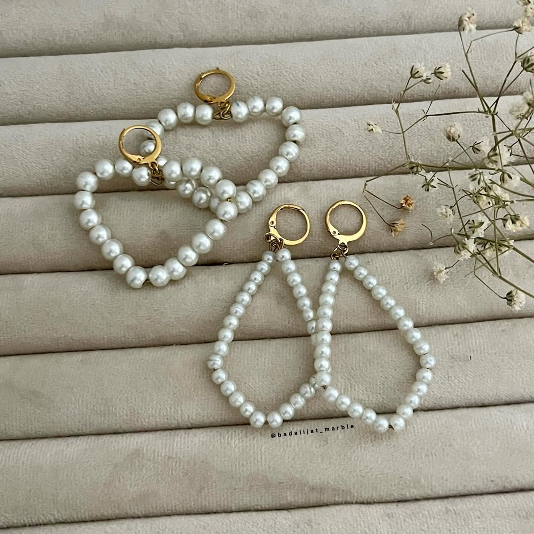 گوشواره مرواریدی در دوطرح قاب و اشکی خاص و زیبا سبک و راحت دارای قفل محکم قفل رنگ ثابت